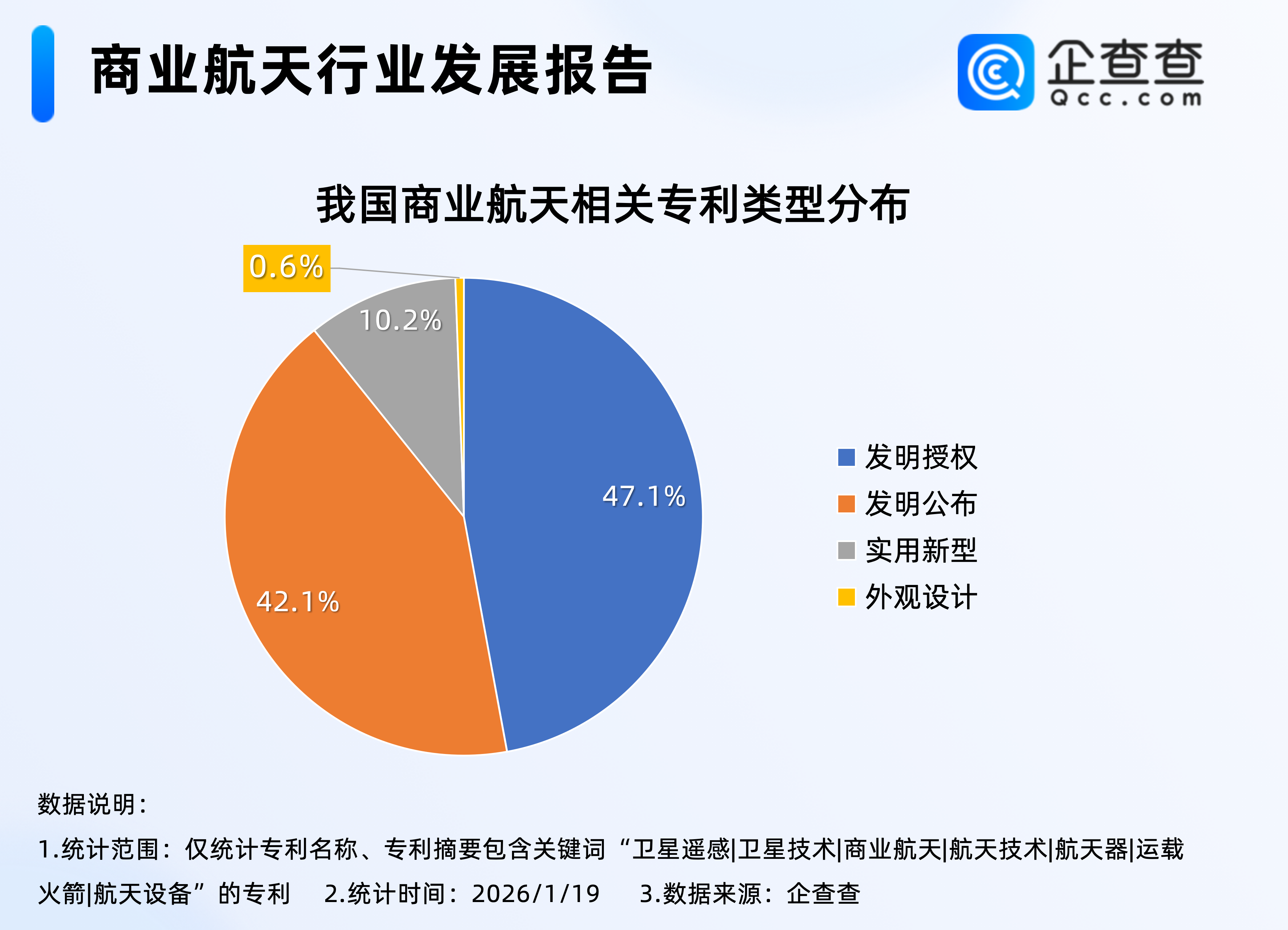 企查查数据显示,2025年注册的2.57万家商业航天相关企业中,位于华东地区的相关企业最多,占比23.7%,其次是华北地区,占比19.3%,东北地区相对最少,占比3.7%。3.从专利来看:发明专利占比近9成